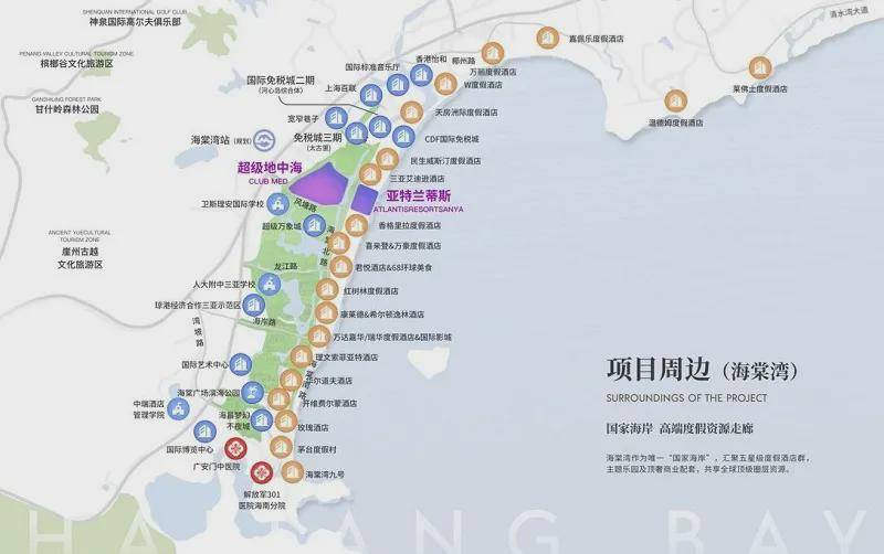 超级地中海·憘悦坐落于海棠湾中区的核心位置,紧邻三亚·亚特兰蒂斯这一标志性建筑,仅约1.2公里的距离让项目能够快速接入板块内的全维度成熟配套。无论是北区的旅游休闲购物区,还是南区的医疗康养度假区,亦或是中区的高端休闲度假资源,都能轻松触达。