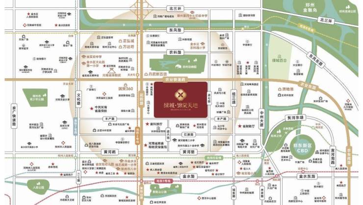 花园路农业路双轴交汇处,成熟度近乎饱和。双主干道约3公里范围内,集聚省府政务、顶奢商圈、千年文脉、知名学府等高阶城市资源,具备不可复制、超越时代的地标属性。